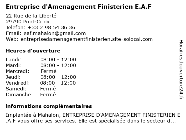 Termes de recherche pour Entreprise d'Amenagement Finisterien E.A.F:entreprise, d'aménagement, finisterien, e.a.f |