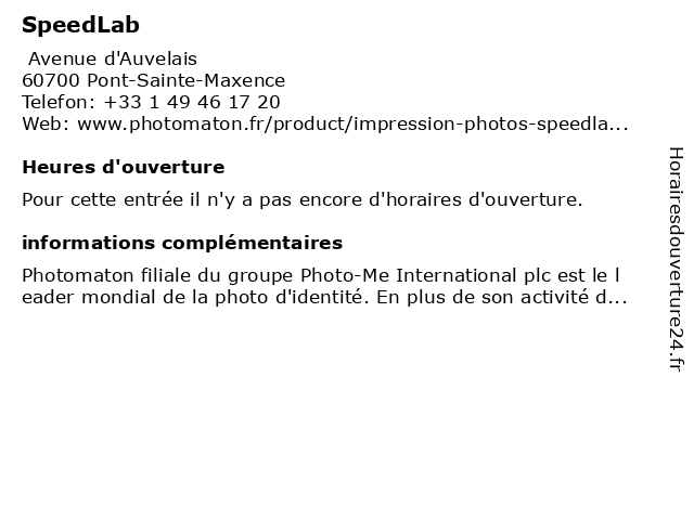 1 SpeedLab (Distance: 0,00 km) Avenue d'Auvelais, 60700 Pont-Sainte-Maxence speedlab