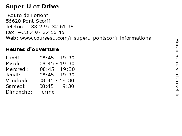 2 Super U Location (Distance: 0,56 km) . Route de Lorient, 56620 Pont-Scorff location, super, transport, utilitaire, véhicule 3 Super U Location (Distance: 6,57 km) n/c ZAC Les Cinq Chemins, 56520 Guidel location, super, transport, utilitaire, véhicule 4 Intermarché SUPER Lorient (Distance: 8,18 km) Rue Général de Bollardière, 56100 Lorient intermarché, lorient, super 5 Intermarché SUPER Lorient (Distance: 9,29 km) Rue Alfred Dreyfus, 56100 Lorient intermarché, lorient, super 6 Intermarché SUPER Hennebont (Distance: 10,64 km) 11 Avenue françois miterrand, 56700 Hennebont hennebont, intermarché, super |
