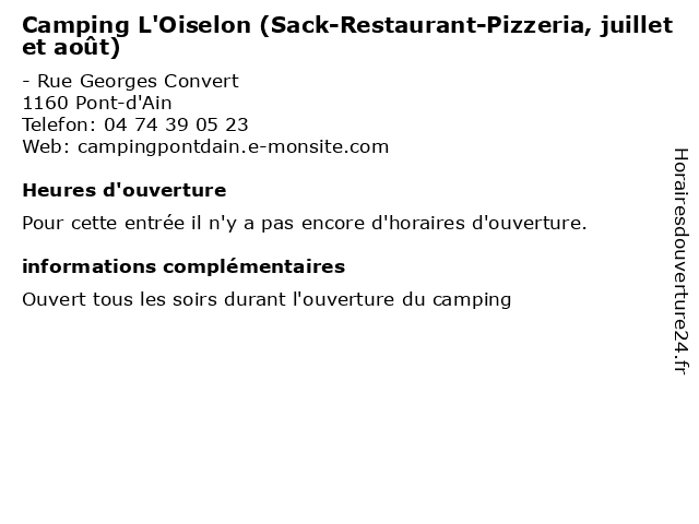 | Appeler Camping L'Oiselon (Sack-Restaurant-Pizzeria, juillet et août) | |