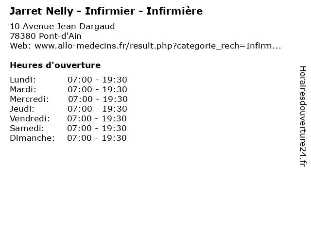 | Mercredi | 07:00-19:30 |