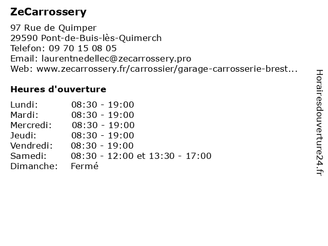 1 ZeCarrossery (Distance: 34,74 km) - Kroaz Kermel, 29700 Plomelin automobile, entretien, garage, réparation, véhicules, zecarrossery 2 ZeCarrossery (Distance: 37,19 km) 1 rue du plan d'eau, 29420 Plouvorn automobile, entretien, garage, réparation, véhicules, zecarrossery 3 ZeCarrossery (Distance: 48,24 km) 14 rue Alsace Lorraine, 29870 Lannilis automobile, entretien, garage, réparation, véhicules, zecarrossery 4 Peugeot (Distance: 3,54 km) . Route De Pleyben, 29150 Chateaulin automobiles, concéssionnaire, garage, motos, peugeot 5 Peugeot (Véhicule Neuf) (Distance: 3,54 km) . Route De Pleyben, 29150 Chateaulin automobiles, concéssionnaire, garage, motos, neuf, peugeot, véhicule 6 Garage G. Nedelec (Distance: 4,49 km) . Route de Pleyben, 29150 Chateaulin accessoires, automobile, carrosserie, g., garage, nedelec, réparation, vente, vidange |