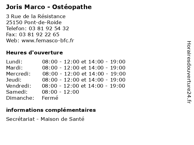 | Lundi | 08:00-12:00 et 14:00-19:00 |