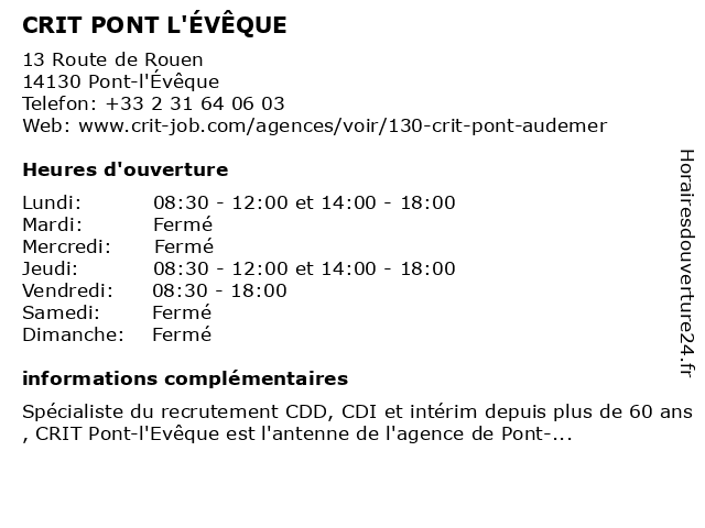Termes de recherche pour CRIT PONT L'ÉVÊQUE:pont, l'eveque, crit |