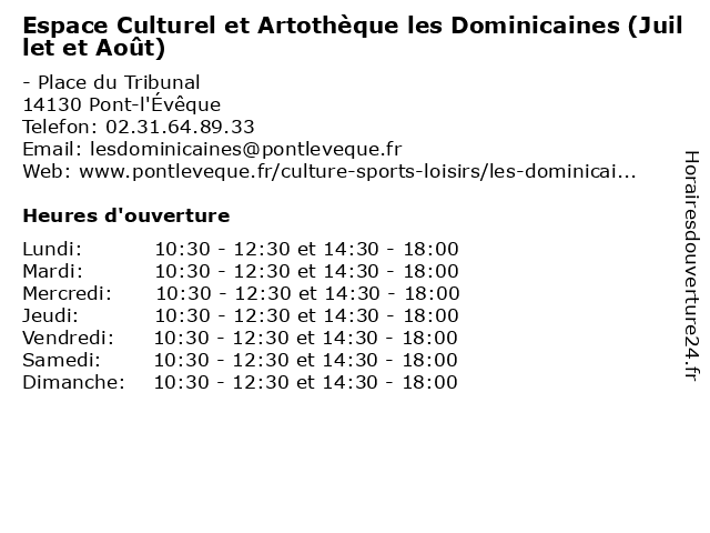 | Dimanche | 10:30-12:30 et 14:30-18:00 |