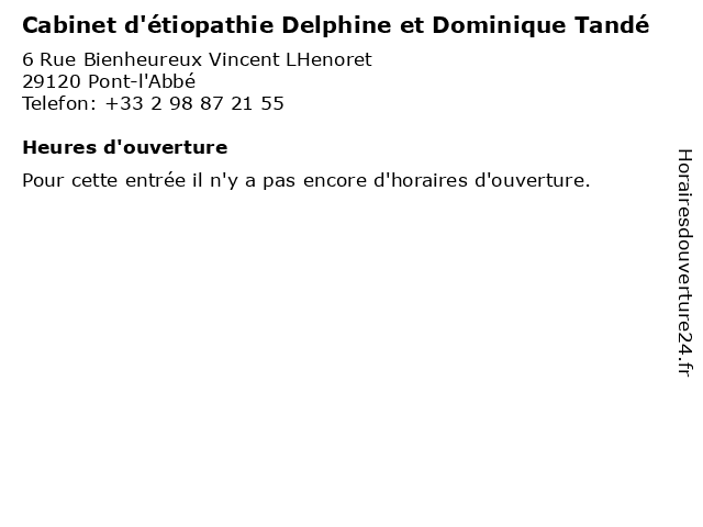 | Appeler Cabinet d'étiopathie Delphine et Dominique Tandé | |