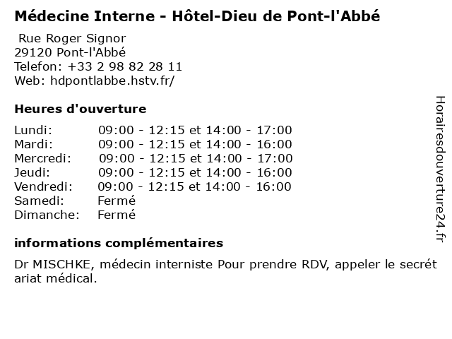 Termes de recherche pour Médecine Interne - Hôtel-Dieu de Pont-l'Abbé:dieu, de, pont, hôtel, medecine, interne, l'abbé |