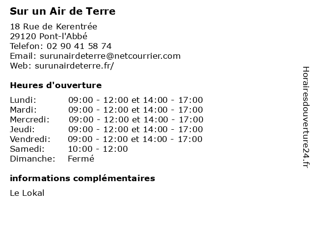 | Mardi | 09:00-12:00 et 14:00-17:00 |