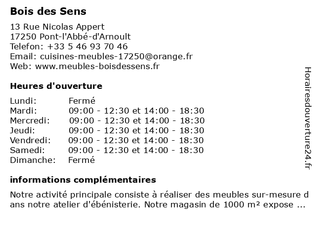 | Samedi | 09:00-12:30 et 14:00-18:30 |