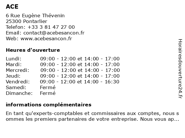 1 ACE (Distance: 47,54 km)52 Rue Urbain Leverrier, 25000 Besançon ace