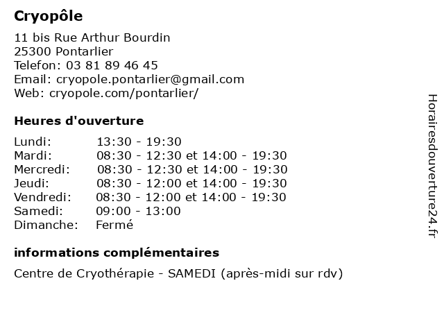 Mercredi | 08:30-12:30 et 14:00-19:30 |