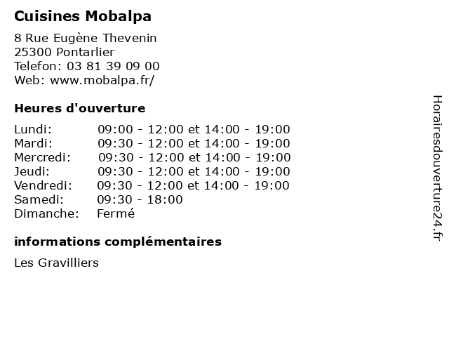 | Mercredi | 09:30-12:00 et 14:00-19:00 |