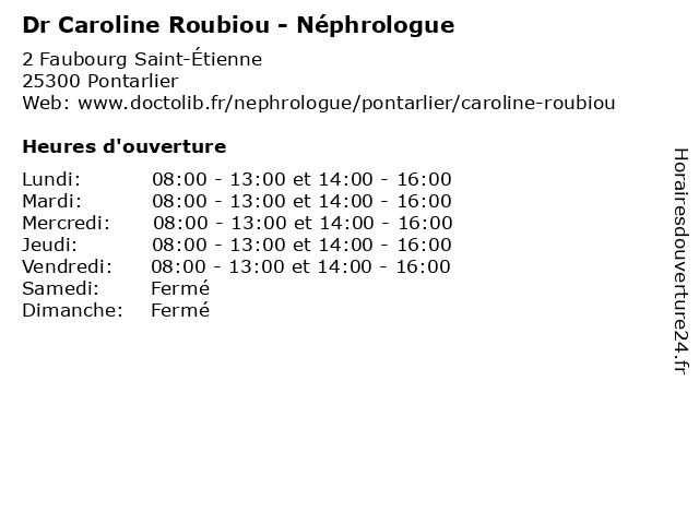 | Lundi | 08:00-13:00 et 14:00-16:00 |