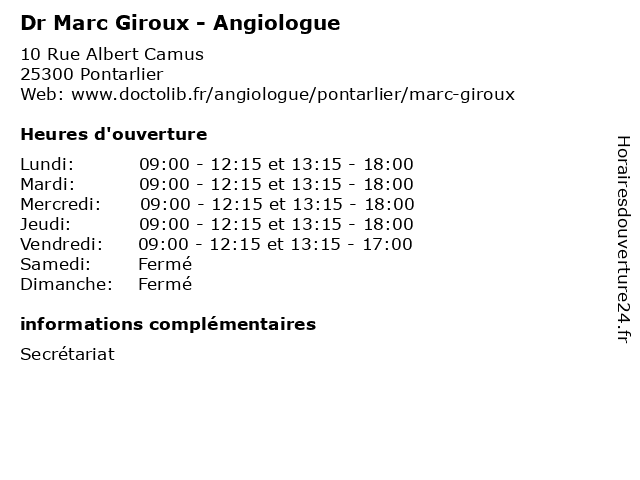 | Mercredi | 09:00-12:15 et 13:15-18:00 |