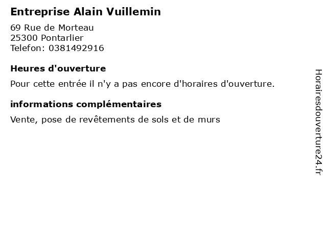 | Appeler Entreprise Alain Vuillemin | |