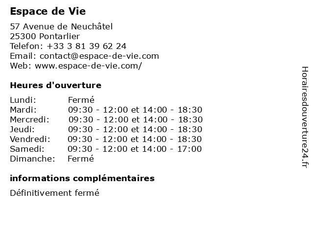 | Mardi | 09:30-12:00 et 14:00-18:30 |