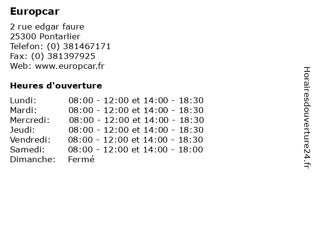 | Lundi | 08:00-12:00 et 14:00-18:30 |