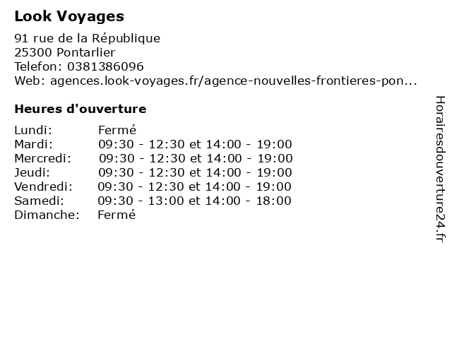 | 1 Jetset Voyages / Albatross Tours (Distance: 0,37 km) 8 Rue Sainte Anne, 25300 Pontarlier agence, albatross, billet d'avion et hôtel pour votre club, jetset, séjour, tours, voyages 2 E.Leclerc Voyages (Distance: 0,39 km) . route de Dijon, 25300 Pontarlier e.leclerc, service, services, services à la personne, voyages 3 E.Leclerc Voyages (Distance: 4,05 km) - Route De Dijon Houtaud, 25300 Pontarlier agence, e.leclerc, tourisme, vacances, voyage, voyages 4 Prêt à partir (Distance: 0,30 km) 17 Rue Marpaud, 25300 Pontarlier agence, billet d'avion et hôtel pour votre club, partir, prêt, prêt à partir, séjour, voyages 5 Jet Tours (Distance: 0,64 km) 2 rue Jean Moulin, 25300 Pontarlier agence, billet d'avion et hôtel pour votre club, jet, séjour, tours, voyage 6 Arbois Tourisme (Distance: 0,64 km) 2 rue Jean Moulin, 25300 Pontarlier agence voyage, arbois, arbois tourisme, autocar, billet d'avion bateau, club, hôtel, séjour, tourisme |