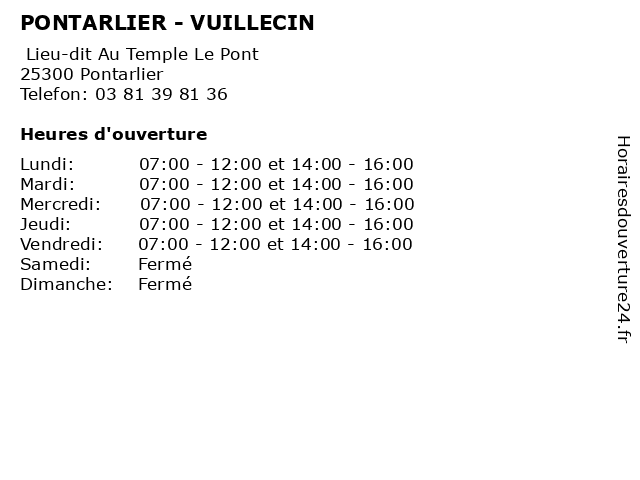 Lundi | 07:00-12:00 et 14:00-16:00 |