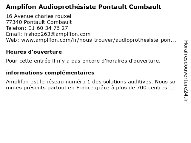 | Appeler Amplifon Audioprothésiste Pontault Combault | |