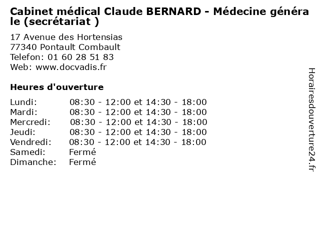 Termes de recherche pour Cabinet médical Claude BERNARD - Médecine générale (secrétariat ):bernard, claude, cabinet, générale, medecine, santé, medical, secretariat, docteur, consultation |