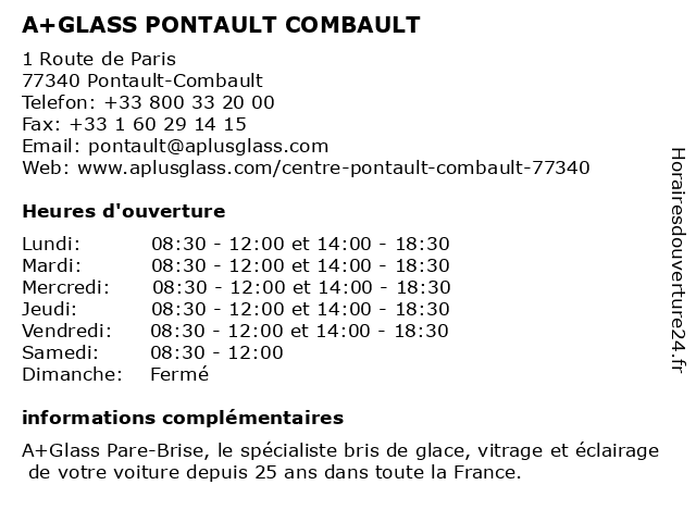 | Lundi | 08:30-12:00 et 14:00-18:30 |