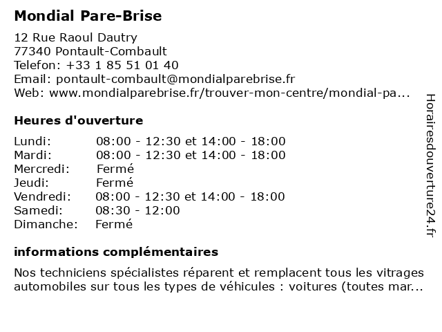 | Mardi | 08:00-12:30 et 14:00-18:00 |