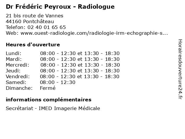 | Mercredi | 08:00-12:30 et 13:30-18:30 |
