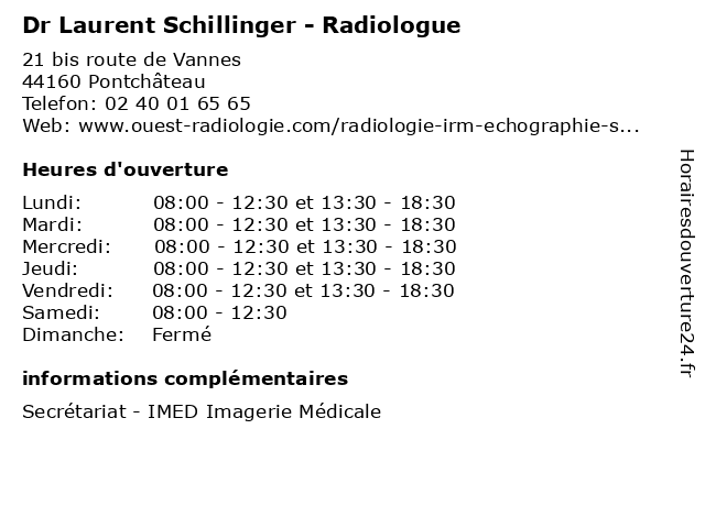1 Dr Laurent Schillinger - Radiologue (Distance: 13,15 km) 17 Rue du Dr Schweitzer, 44550 Montoir-de-Bretagne consultation, docteur, dr, laurent, med, médecin, médecine, radiologue, schillinger, traitement 2 Dr Laurent Schillinger - Radiologue (Distance: 19,83 km) 6 Rue Henri Gautier, 44600 Saint-Nazaire consultation, docteur, dr, laurent, med, médecin, médecine, radiologue, schillinger, traitement 3 Dr Anne Laurent - Radiologue (Distance: 0,00 km) 21 bis route de Vannes, 44160 Pontchâteau anne, consultation, docteur, dr, laurent, med, médecin, médecine, radiologue, traitement 4 Laurent Diaz Sophie Alexandra (Distance: 7,60 km) La Claie Aux Ducs, 44750 Campbon alexandra, diaz, laurent, restaurants, sophie 5 Dr Anne Laurent - Radiologue (Distance: 13,15 km) 17 Rue du Dr Schweitzer, 44550 Montoir-de-Bretagne anne, consultation, docteur, dr, laurent, med, médecin, médecine, radiologue, traitement 6 Gérard-Morel Delphine et Blin Laurent SCP Notaires Associés (Distance: 14,23 km) 19 Rue du Parc des Sports, 44260 Savenay associés, blin, delphine, et, gérard, laurent, morel, notaires, scp |