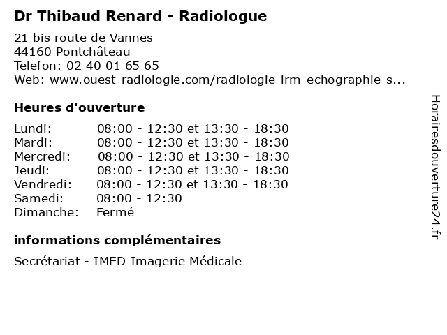 1 Dr Thibaud Renard - Radiologue (Distance: 13,15 km) 17 Rue du Dr Schweitzer, 44550 Montoir-de-Bretagne consultation, docteur, dr, med, médecin, médecine, radiologue, renard, thibaud, traitement 2 Dr Thibaut Renard - Radiologue (Distance: 19,83 km) 6 Rue Henri Gautier, 44600 Saint-Nazaire consultation, docteur, dr, med, médecin, médecine, radiologue, renard, thibaut, traitement 3 Dr Catherine Renard - Médecin généraliste (Distance: 25,59 km) 7 Rue des Droits de l'Homme, 44130 Blain catherine, consultation, docteur, domicile, dr, en, générale, généraliste, médecin, médecine, renard, santé, visite 4 Dr Thibaud Renard - Radiologue (Distance: 27,81 km) Avenue de la Bouexière, 44350 Guérande consultation, docteur, dr, med, médecin, médecine, radiologue, renard, thibaud, traitement 6 Guermeur Thibaud Claude (Distance: 41,22 km) Thipow Biker, 44700 Orvault claude, guermeur, restaurants, thibaud |