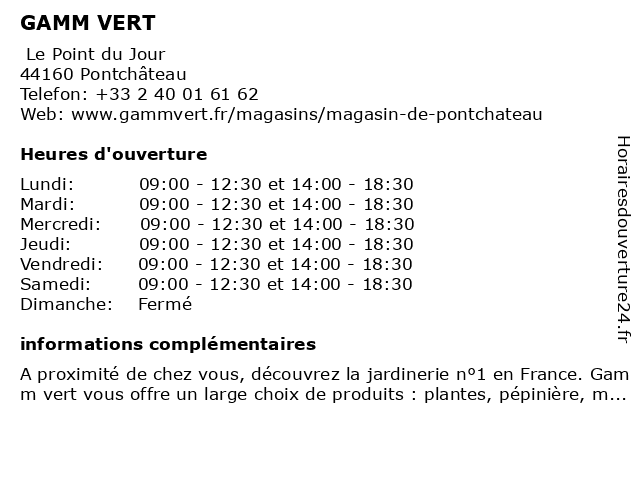 | Samedi | 09:00-12:30 et 14:00-18:30 |