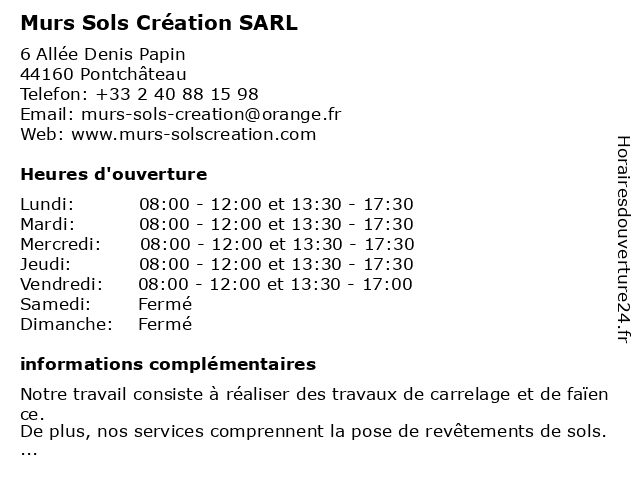 Termes de recherche pour Murs Sols Création SARL:sarl, création, murs, sols |