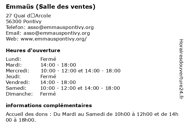 | Samedi | 10:00-12:00 et 14:00-18:00 |
