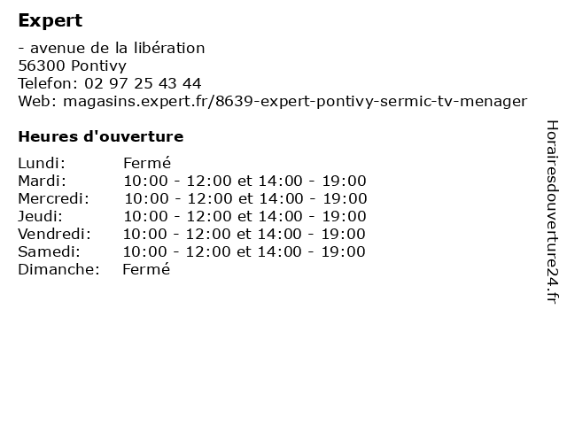 | Lundi | Fermé |