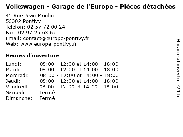 1 Volkswagen - Garage de l'Europe - Hall (Distance: 0,00 km) 45 Rue Jean Moulin, 56300 Pontivy atelier, automobile, concessionnaire, de, garage, hall, l'europe, neuve, occasion, réparation, vente, volkswagen 2 Volkswagen - Garage de l 'Europe - Atelier (Distance: 0,00 km) 45 Rue Jean Moulin, 56300 Pontivy 'europe, atelier, automobiles, concessionnaire, de, garage, motos, mécanique, volkswagen 3 Volkswagen (Distance: 0,04 km) 45 Rue Jean Moulin, 56302 Pontivy automobiles, concessionnaire, garage, motos, volkswagen 4 Volkswagen (Activités Véhicules dOccasion ) (Distance: 0,04 km) 45 Rue Jean Moulin, 56302 Pontivy activités, automobiles, concessionnaire, doccasion, garage, motos, volkswagen, véhicules 5 Volkswagen ( Atelier Peinture Carrosserie ) (Distance: 0,04 km) 45 Rue Jean Moulin, 56302 Pontivy atelier, automobiles, carrosserie, concessionnaire, garage, motos, peinture, volkswagen 6 Volkswagen ( Express avec forfait ) (Distance: 0,04 km) 45 Rue Jean Moulin, 56302 Pontivy automobiles, avec, concessionnaire, express, forfait, garage, motos, volkswagen |