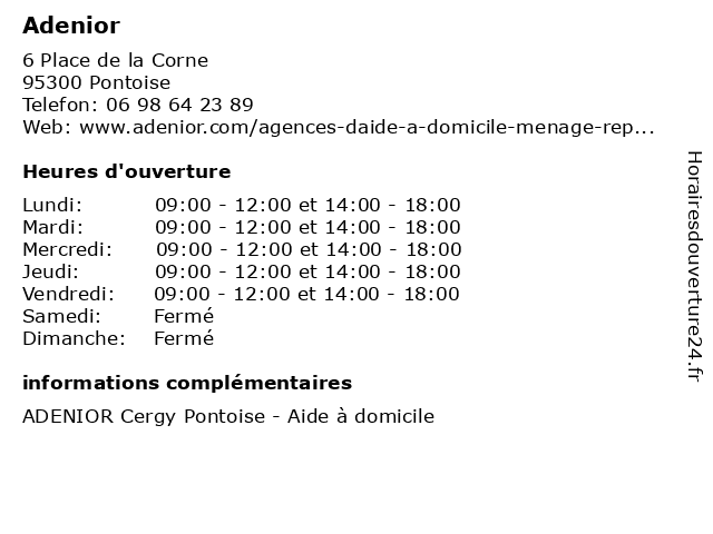 1 Adenior (Distance: 13,28 km) 35 rue Louis Savoie, 95120 Ermont accompagnement, adenior, aide à domicile, medical, services 2 Adenior (Distance: 26,83 km) 86 rue des entrepreneurs, 75015 Paris accompagnement aux courses, adenior, aide aux repas, entretien du domicile, garde d'enfant, ménage, repassage 3 Adenior (Distance: 28,14 km) 48 avenue Victor Cresson, 92 Issy les Moulineaux adenior, domicile, ménage, repassage 4 Adenior (Distance: 44,90 km) 7 rue Carnot,, 27200 Vernon accompagnement, adenior, aide à domicile, medical, services 5 Adenior (Distance: 48,08 km) 8 bis rue Gambetta, 77400 Lagny Sur Marne accompagnement, adenior, aide à domicile, medical, services 6 |