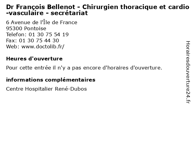 | Appeler Dr François Bellenot - Chirurgien thoracique et cardio-vasculaire - secrétariat | |
