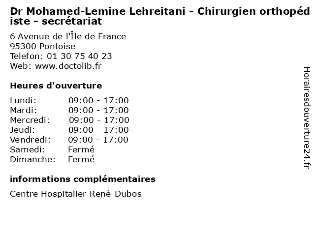 1 Dr Slim Achour - Chirurgien orthopédiste - secrétariat (Distance: 0,00 km) 6 Avenue de l'Île de France, 95300 Pontoise achour, chirurgien, chirurgien orthopédiste, dr, médecins, médicaments, orthopédiste, santé, secrétariat, slim, spécialiste 2 Dr Hicham Alarab - Chirurgien orthopédiste - secrétariat (Distance: 0,00 km) 6 Avenue de l'Île de France, 95300 Pontoise alarab, chirurgien, chirurgien orthopédiste, dr, hicham, médecins, médicaments, orthopédiste, santé, secrétariat, spécialiste 3 Dr Hassan Fokeladeh - Chirurgien orthopédiste - secrétariat (Distance: 0,00 km) 6 Avenue de l'Île de France, 95300 Pontoise chirurgien, chirurgien orthopédiste, dr, fokeladeh, hassan, médecins, médicaments, orthopédiste, santé, secrétariat, spécialiste 4 Dr Florian Marcaillou - Chirurgien orthopédiste - secrétariat (Distance: 0,00 km) 6 Avenue de l'Île de France, 95300 Pontoise chirurgien, chirurgien orthopédiste, dr, florian, marcaillou, médecins, médicaments, orthopédiste, santé, secrétariat, spécialiste 5 Dr Michael Temam - Chirurgien orthopédiste - secrétariat (Distance: 12,39 km) 3 Chemin des 3 Sources, 95290 L'Isle-Adam chirurgien, consultation, docteur, dr, med, michael, médecin, médecine, orthopédiste, secrétariat, temam, traitement 6 Dr Louis Ratte - Chirurgien orthopédiste et traumatologue - secretariat (Distance: 12,58 km) 15 Avenue de la Libération, 95240 Cormeilles-en-Parisis chirurgien, dr, et, louis, médecin, médecine, médical, orthopédiste, pharmaceutique, ratte, secretariat, traitement, traumatologue |