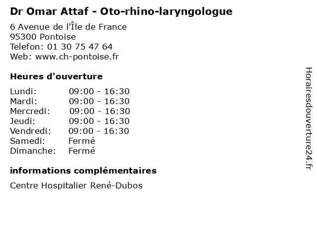 1 Dr. Virginie Tissot-Jovet - Oto-rhino-laryngologue (Distance: 0,00 km) 6 Avenue de l'Ile de France, 95300 Cergy Pontoise consultation, docteur, dr., jovet, laryngologie, laryngologue, medecins, oto, rhino, santé, tissot, virginie 2 Dr Reski Tadjer - Oto-rhino-laryngologue (Distance: 0,00 km) 6 Avenue de l'Île de France, 95300 Pontoise dr, laryngologie, laryngologue, médecins, médicaments, oto, reski, rhino, santé, secrétariat, spécialiste, tadjer 3 Dr Louis-Marie Opa - Oto-rhino-laryngologue (Distance: 0,00 km) 6 Avenue de l'Île de France, 95300 Pontoise dr, laryngologie, laryngologue, louis, marie, médecins, médicaments, opa, oto, rhino, santé, secrétariat, spécialiste 4 Dr. Yoldos Nasra - Oto-rhino-laryngologie (Distance: 0,12 km) 6 Avenue de l'Ile de France, 95300 Cergy Pontoise consultation, docteur, dr., laryngologie, medecins, nasra, oto, rhino, santé, yoldos 5 Dr Isabelle Fligny - Oto-rhino-laryngologiste (Distance: 7,27 km) 1-3 Rue Charles Bourseul, 78700 Conflans-Sainte-Honorine dr, fligny, isabelle, laryngologiste, médecin, médecine, médical, oto, pharmaceutique, rhino, traitement 6 Dr. Jean Rémy Biffot - Oto-rhino-laryngologie (Consultation sur rendez-vous) (Distance: 10,26 km) 12 Rue Ancelot, 95150 Taverny biffot, consultation, docteur, dr., jean, laryngologie, medecins, oto, rendez, rhino, rémy, santé, sur, vous |
