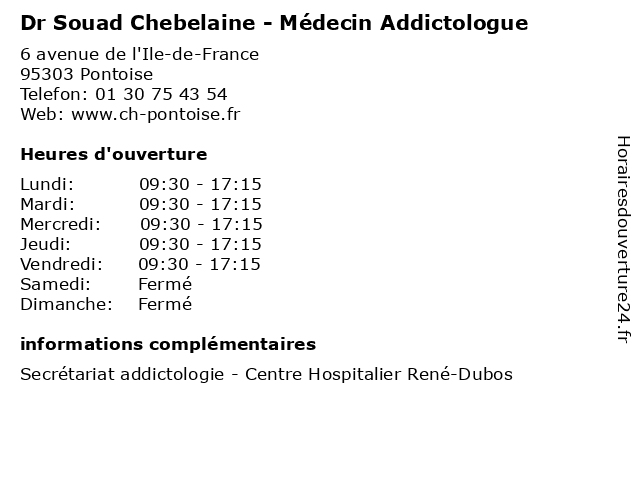 Termes de recherche pour Dr Souad Chebelaine - Médecin Addictologue:pontoise, rené, dubos, ch, médecin, dr, souad, addictologie, addictologue, chebelaine, adiction, nevrose |