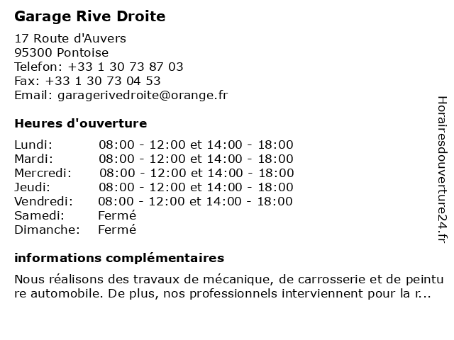 | Lundi | 08:00-12:00 et 14:00-18:00 |