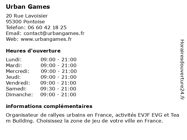 | Samedi | 09:30-21:00 |