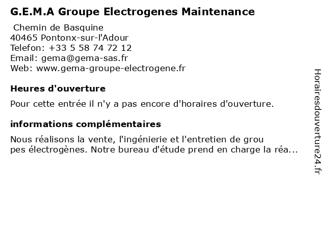 | Appeler G.E.M.A Groupe Electrogenes Maintenance | |