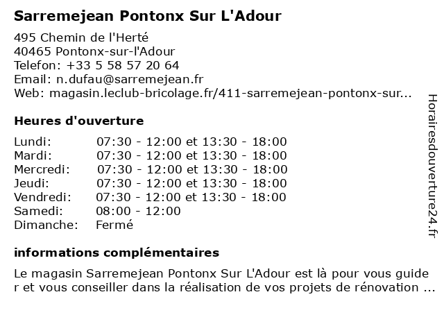 2 Sarremejean Saint Sever (Distance: 27,73 km) 2 Route de Grenade, 40500 Saint-Sever saint, sarremejean, sever 3 Sarremejean Saint Pierre Du Mont (Distance: 34,77 km) 2100 Avenue du Président John Kennedy, 40280 Saint-Pierre-du-Mont du, mont, pierre, saint, sarremejean |