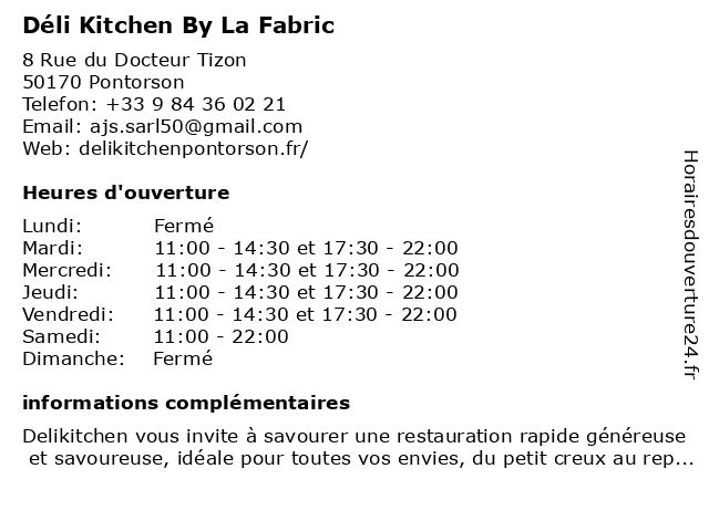 | Mardi | 11:00-14:30 et 17:30-22:00 |
