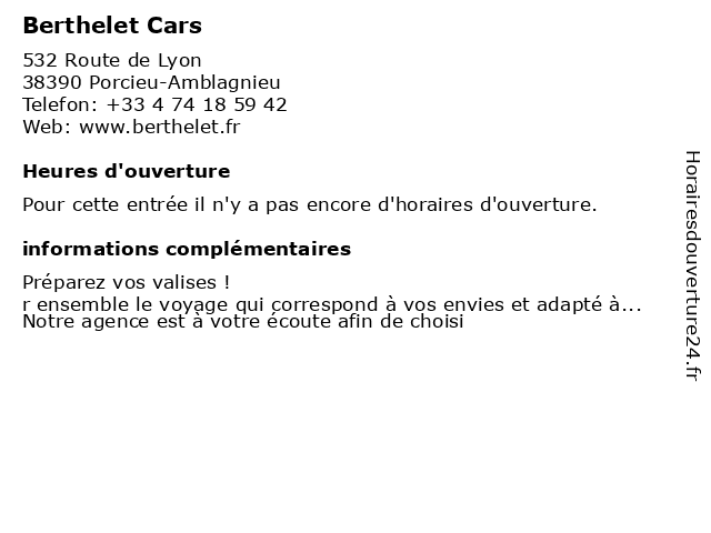 2 Berthelet voyages Lagnieu (Distance: 9,88 km) 30 Rue Pasteur, 01150 Lagnieu berthelet, lagnieu, voyages 3 Berthelet voyages Crémieu (Distance: 15,89 km) Route de Buisson Rond, 38460 Crémieu berthelet, crémieu, voyages 4 Chris Cars (Distance: 17,12 km) 3 route de Belmont, 38230 Chavanoz amortisseur, cars, chris, echappement, freinage, pneu, point, revision 5 Aire de camping-cars - Borne vidange (Distance: 17,85 km) 11 Rue des Stades, 01800 Meximieux aire, borne, camping, car, cars, de, service, stationnement, tourisme, vidange 6 CarGo (Distance: 26,71 km) n/a Aéroport Saint Exupéry, 69124 Colombier-Saugnieu cargo, cars, rental, reservation, services, trucks, vans |