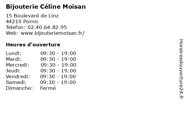 1 GRAS Céline SCP Cadoret-Toussaint Denis et Associés (Distance: 0,47 km) Route de Saint Michel, 44210 Pornic associés, cadoret, céline, denis, et, gras, scp, toussaint 2 Céline Jolivet - Hypnothérapeute (Distance: 0,48 km) 24 Route de Saint-Michel Sainte-Marie, 44210 Pornic celine, céline, hypno, hypnose, hypnothérapeute, jolivet, sante 3 Bijouterie Isabelle Debec (Distance: 0,49 km) 1 Rue du Traité d'Amsterdam, 44210 Pornic bijouterie, bijoux, bracelets, debec, isabelle, montres 4 MARSAC ADELINE BIJOUTERIE (Distance: 14,20 km) 10 Rue du Général de Gaulle, 44250 Saint-Brevin-les-Pins adeline, bijouterie, marsac 5 Bijouterie Fan d'Or (Distance: 16,62 km) 14 Grande Rue, 85330 Noirmoutier-en-l'Île bijou, bijouterie, bijoux, boutique, d'or, fan, horlogerie, joaillerie, montres 6 Céline Dubray-Allamelou - Psychologue (Distance: 18,23 km) 27 Rue Roger Salengro, 44600 Saint-Nazaire allamelou, céline, dubray, folie, psychiatre, psychiatrie, psychiatrique, psychologue |