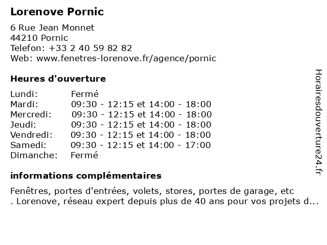 | Lundi | Fermé |
