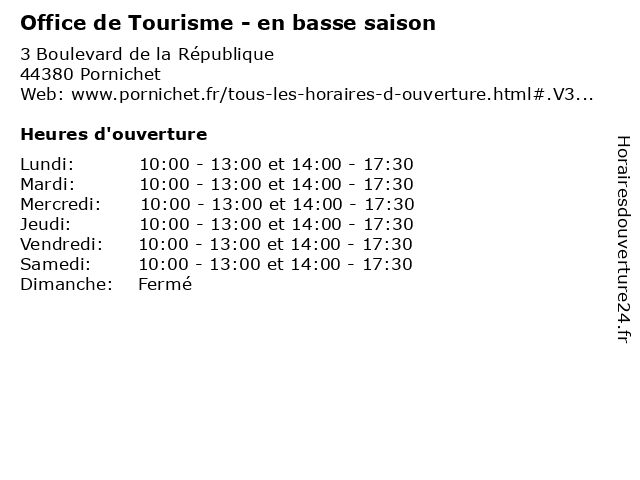 | Vendredi | 10:00-13:00 et 14:00-17:30 |