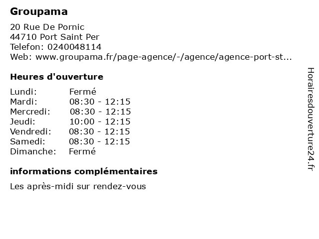 1 Groupama (Distance: 4,76 km) 43 Rue de Nantes, 44830 Bouaye agence, banque, crédit, du, groupama, l'argent, l'épargne, le crédit, les banques, les prêts 2 Groupama (Distance: 7,30 km) 17 Rue du Clos Grille, 44640 Le Pellerin agriculteurs, assurance habitation, assurance santé, assurance vie, compte épargne, crédit travaux et compte bancaire., diverses offres telles que l’assurance auto, groupama, groupama est une mutuelle d’assurances et de banque généraliste. l’enseigne offre aux particuliers, professionnels et entreprises, prêt personnel 3 Groupama (Distance: 13,43 km) 39 Rue de Hôtel-de-Ville, 44310 Saint-Philbert-de-Grand-Lieu agence, banque, crédit, du, groupama, l'argent, l'épargne, le crédit, les banques, les prêts 4 Groupama (Distance: 14,13 km) 41 Place Jean Mace, 44100 Nantes agriculteurs, assurance habitation, assurance santé, assurance vie, compte épargne, crédit travaux et compte bancaire., diverses offres telles que l’assurance auto, groupama, groupama est une mutuelle d’assurances et de banque généraliste. l’enseigne offre aux particuliers, professionnels et entreprises, prêt personnel 5 Groupama (Distance: 15,88 km) 3 Boulevard du General Leclerc, 44360 Saint-Étienne-de-Montluc agence, banque, crédit, du, groupama, l'argent, l'épargne, le crédit, les banques, les prêts 6 Groupama (Distance: 16,08 km) 5 Rue Victor Hugo, 44400 Reze agence, banque, crédit, du, groupama, l'argent, l'épargne, le crédit, les banques, les prêts |